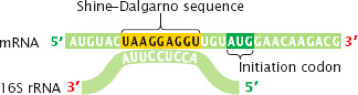 This sequence is seen above, and is UAAGGAGGU, and the Shine-Dalgarno sequence is recognized by the ribsome complementary base pairing with the mRNA at this location.